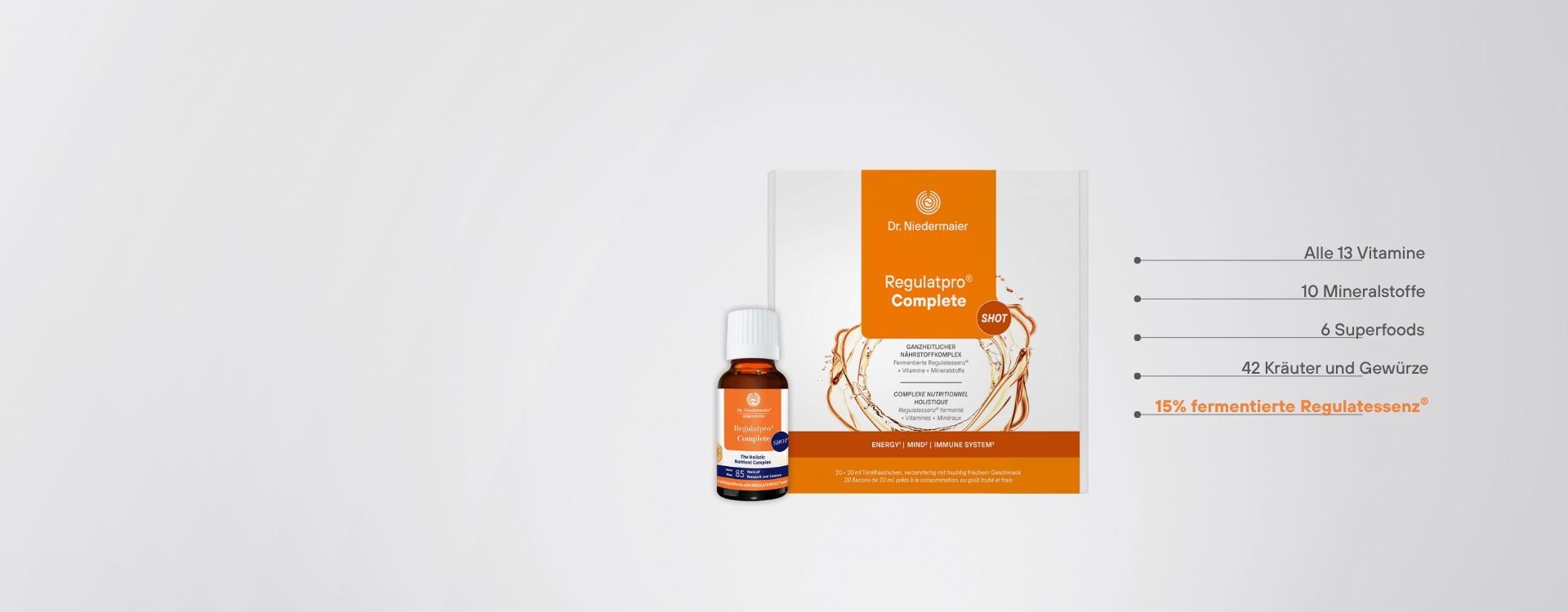 Kundinnen und Kunden finden im Supplement-Shop von Dr. Niedermaier eine handverlesene Auswahl an Gesundheitsprodukten mit ausgewählten Inhaltsstoffen. Alle Produkte sind "Made in Germany" und werden nach innovativen Verfahren hergestellt, bei denen das Beste aus den natürlichen Rohstoffen erhalten bleibt und in konzentrierter Form aufgenommen werden kann.